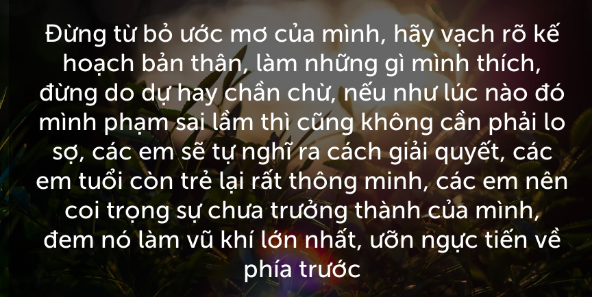 Nhưng chúng ta cũng phải thấy rõ được rằng khả năng chuyên môn chỉ là điều kiện cơ bản nhất bảo đảm sự sinh tồn và phát triển của người thành công. Điều đáng được khẳng định nhất ở đây đó là thái độ không ngừng tích lũy tài năng. Lặng lẽ chờ đợi cơ hội.